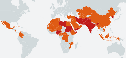 Map of the Top 50 Countries where Christians are Persecuted (Open Doors)